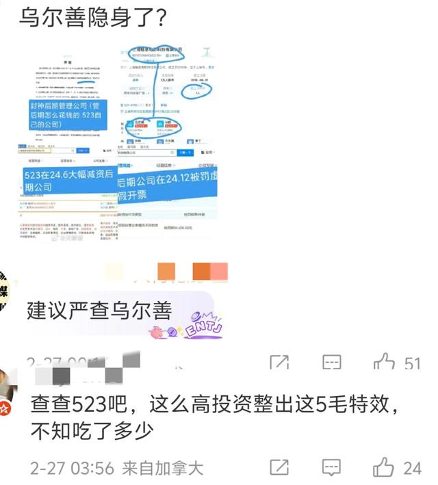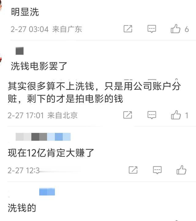 网友评论说这一看就是洗钱了,他出品的电影都是大爆的,怎么可能几年来一直平不了账,还有说把乌尔善也查的,他也不无辜